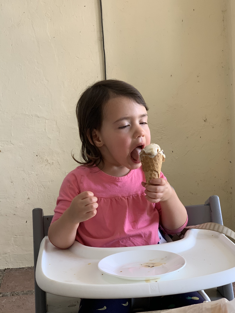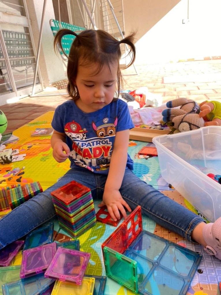 Participaba en cosas de la cocina, y lo más sorprendente, fue que a los dos años era capaz de quebrar sola huevos para el desayuno (alguna cascarita se escapaba) y además ayudaba a su mama a cocinar. Al final le preguntaba su mamá sobre alguna receta que hacían juntas y ella le decía los ingredientes. Anduvo descalza casi todos los días y todas horas, dejó el biberón, desarrolló sus habilidades manuales no solo en la cocina, sino dibujando, pintando, e hizo sus pininos jugando ping pong, festejó su cumpleaños numero dos, mostró ya su carácter, firme, decidida y a la vez independiente, aunque toma sus precauciones y si necesita, pide ayuda. Le gusta todo organizado, y en su lugar.