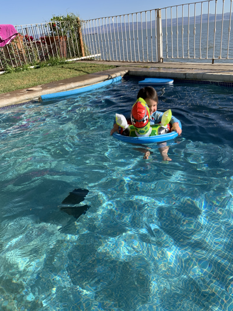 Pilin, sus papás, y Tessa estuvieron apartados casi todo ese tiempo, y nosotros, sus abuelos, aprovechábamos los fines de semana, para llevarles sus encargos de víveres y compartíamos con ellos esos días. Cuando se llegó a mas controles de la pandemia, pudieron salir más en confianza, pero con sus precauciones y vivir así como Chapaltecos, yendo de compras y encargando comida de restaurantes de Ajijic y San Antonio, poblaciones de la ribera de Chapala.