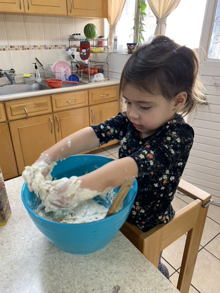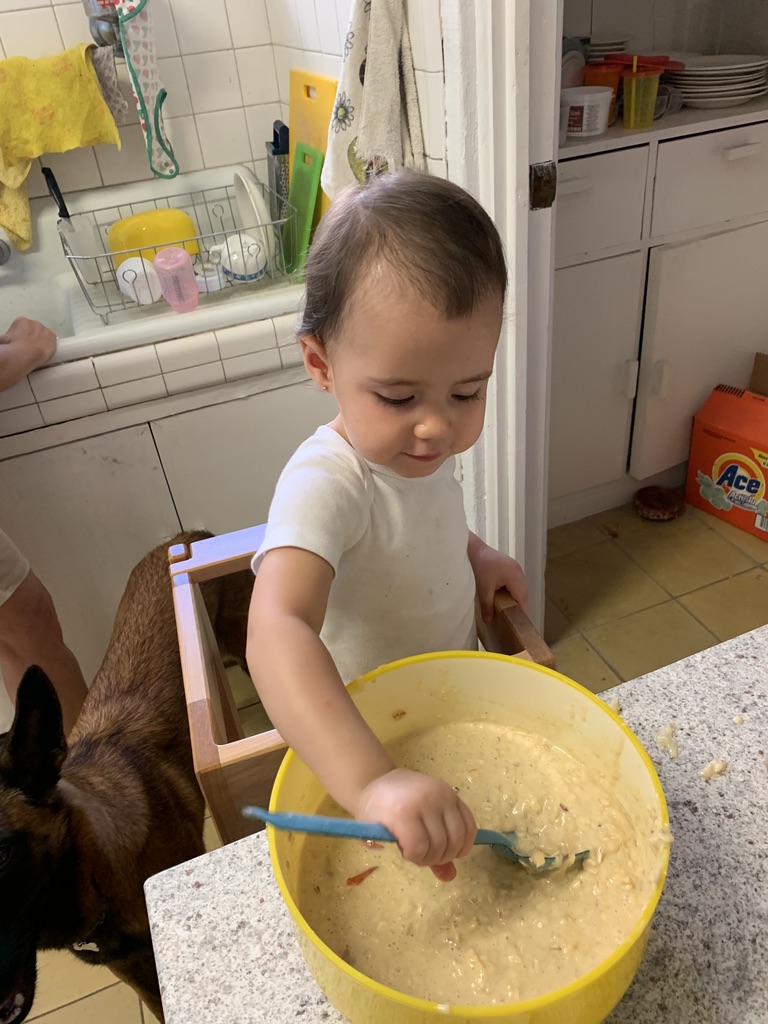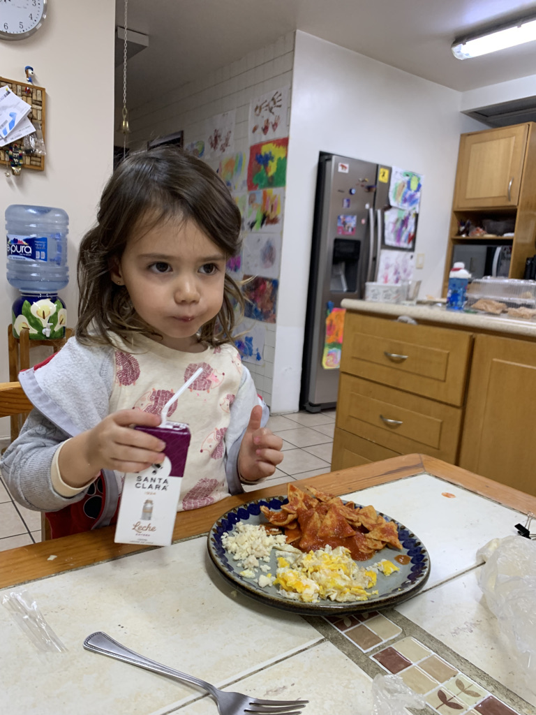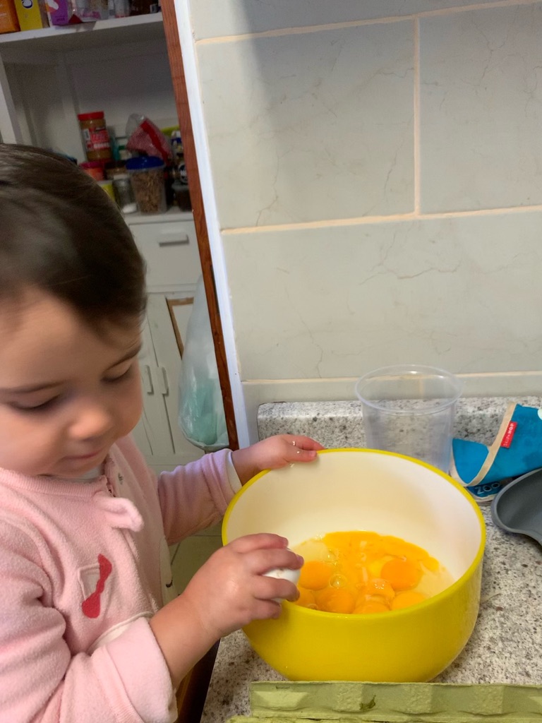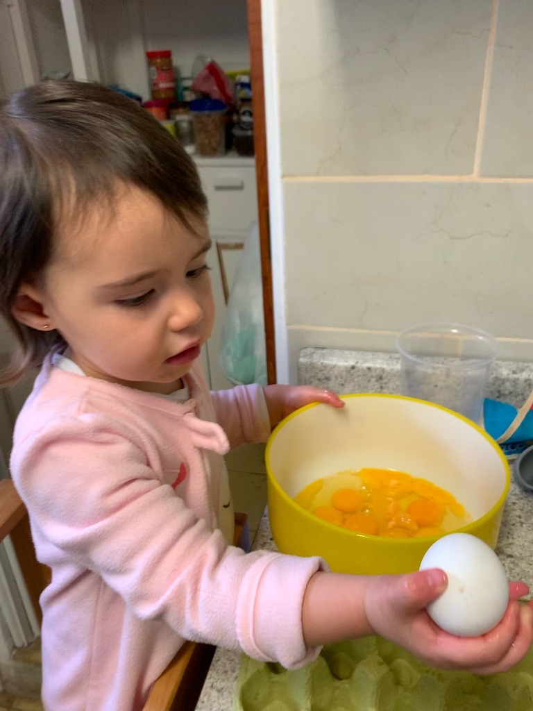 Actualmente ahora hay mas resultados pues es sorprendente como Pilin se interesa en participar de la preparación de los alimentos familiares y disfruta el ir probando de los ingredientes al mismo tiempo que colabora. En gran medida creo que los años de pandemia fueron un detonante para que tanto Pilin como su madre, potencializarán sus habilidades en la cocina. Y menciono esto porque Pilin contando dos años pasaditos de edad, ya sabia de memoria los ingredientes de los hot cakes, pero no con harina preparada, sino desde cero, harina, royal, sal, vainilla, canela, avena, alguna fruta rayada o zanahoria, huevos, leche, mantequilla, coco rayado y algunas otras variantes que Pilin va mencionando de memoria y que hacen de esta mezcla unos “hot cakes” nutritivos y deliciosos. Y a esa temprana edad ya, tenia la “comisión” de quebrar los huevos cuando se requerían.