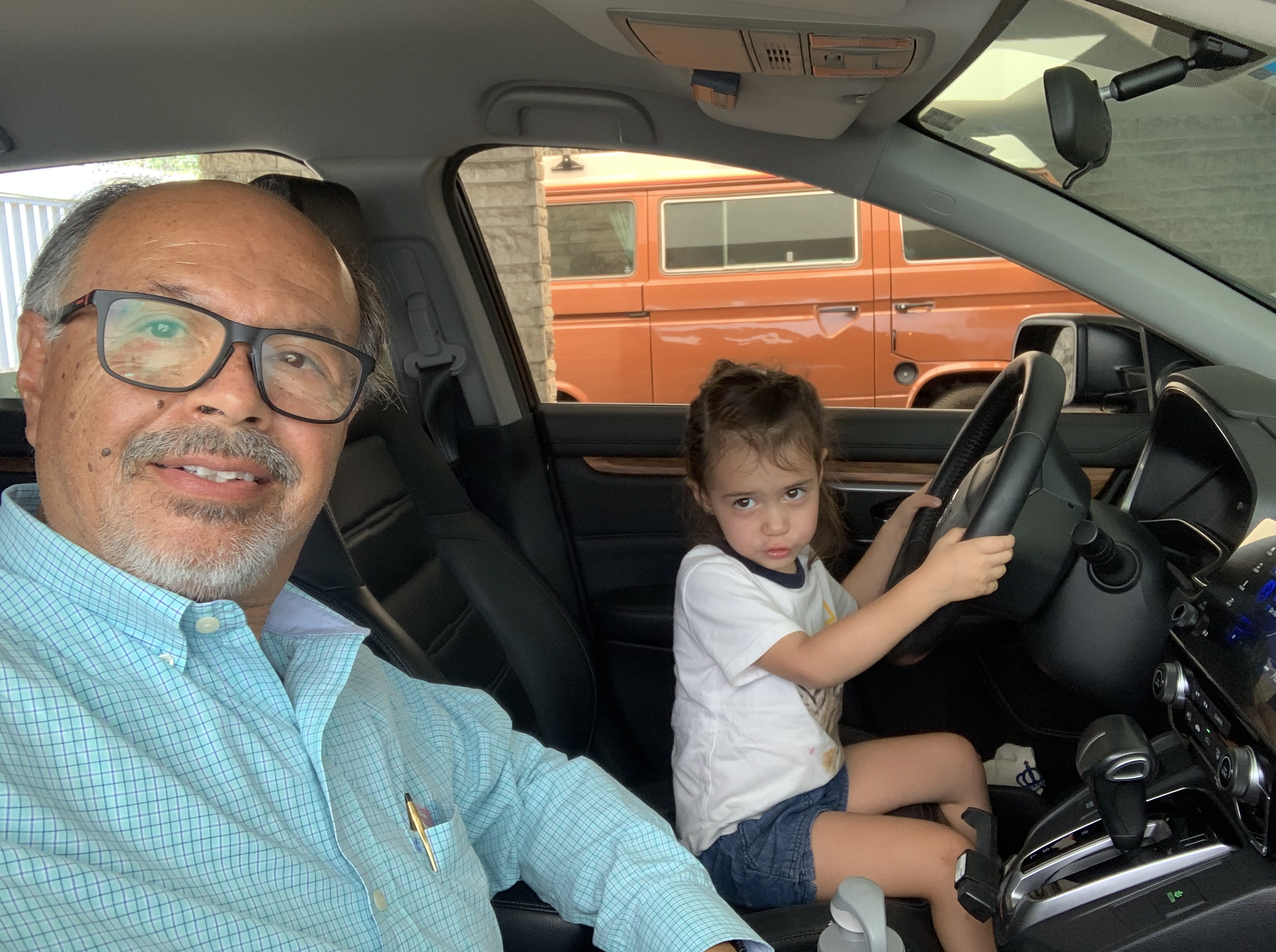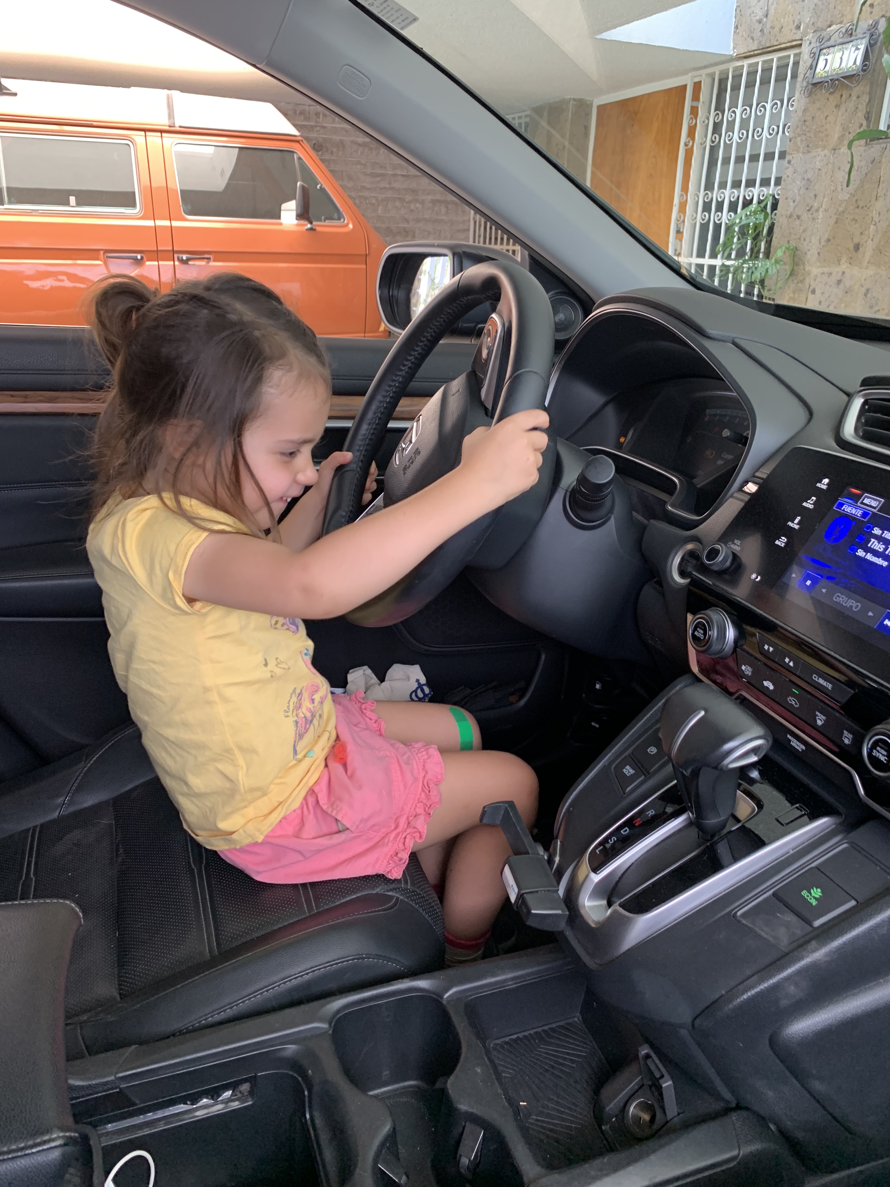 El cerebro de Pilin, esta ávido de conocimientos y ya desde antes de hablar, era capaz de comunicarse con un leguaje de señas que le enseñaron sus padres y que en uno de mis blogs les comenté. Su mente como dije es una esponja que absorbe y asimila todo, el lenguaje, reconoce olores, sabores, gran coordinación motriz y ahora a sus 3.9 años analiza, razona y empieza a tener conciencia de lo que es el “tiempo”. Tiene interés y sed de aprender, no solo de observar, sino que pregunta. Por ejemplo, al regresar de la escuela y al llegar a la casa, le gusta brincar al asiento del conductor y mueve todos los botones, palancas y el radio, descubriendo la función de cada cosa. La ultima vez se deslizo del asiento del conductor para tocar con su pie el acelerador y me pregunta: ¿Abu que esto que estoy tocando? El acelerador. ¿y para qué sirve? Le explico y escucha, luego  pasó su pie al freno e igual, le explico cual es y su función.  Ya imaginaran, cuando voy a usar el coche después de que ella previamente estuvo allí, tengo que ajustar desde el volante, apagar luces, limpia-parabrisas, radio, en fin, queda todo como si un torbellino hubiese pasado por el asiento del conductor.