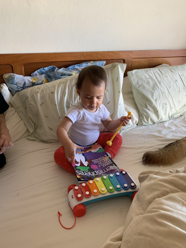 En estos casi cuatro años de vida de Pilin, he visto asombrosamente el desarrollo de su cerebro/mente y de cómo ésta absorbe como esponja, toda la información de su entorno, la organiza y la almacena para dar paso a razonamientos y acciones basadas en esa cantidad de datos y experiencias de su vida día a día. Mi cerebro y mente desde hace ya algunos años, esta bajando las revoluciones y la comparo con un hueso de aguacate (no solo por calvo) al que, al llegarle información, choca y solo una mínima se adhiere, pero con el paso de los días se seca y se cae de la superficie. Esto también me hace de una u otra manera seguir buscando actividades para que las neuronas se sigan esforzando y pelear así contra el Alzheimer.