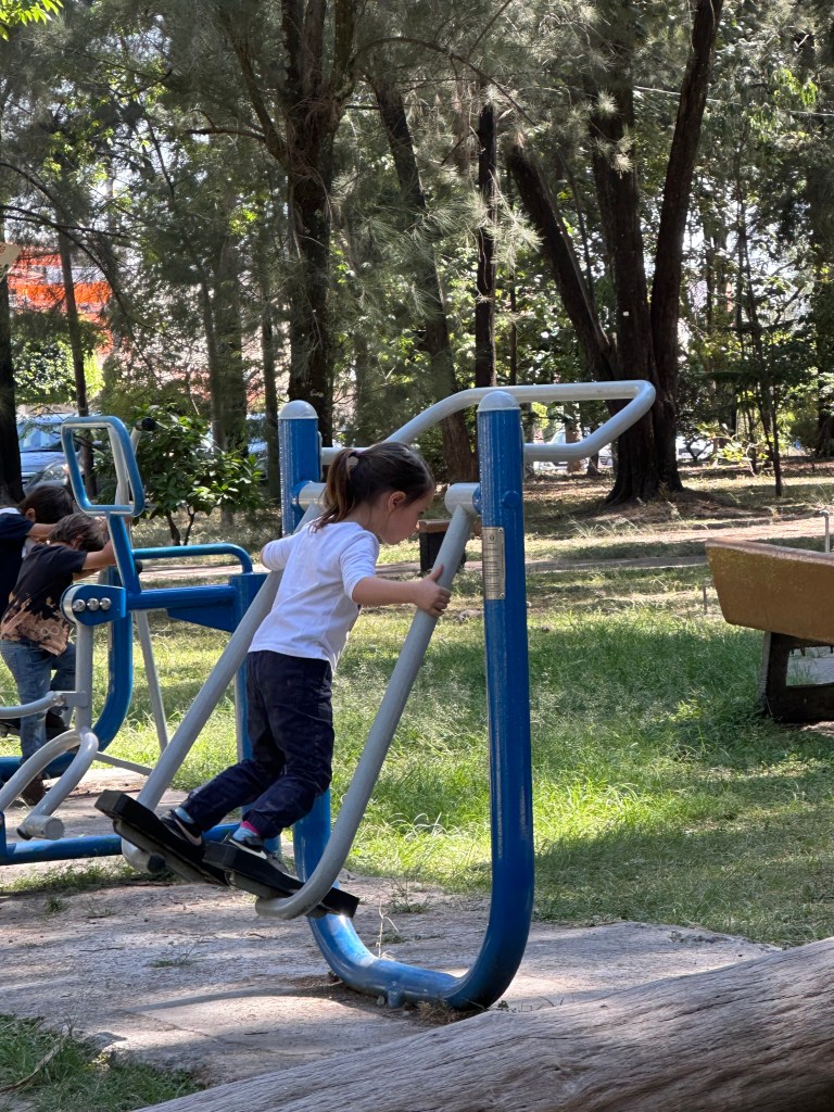 Casi todos los jueves que voy a recoger a Pilin de su escuela, a la salida, vamos a un parque que se encuentra cerca de su kínder al que también van algunos de sus compañeros. Es una manera en que conviven y juegan los niños y niñas en un entorno libre bajo la supervisión de padres y abuelos.