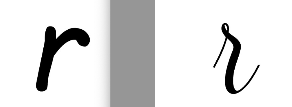 Al estar escribiendo este blog, descubrí que en mi conexión con Pilin, hay otra vida enlazada de la que no me había percatado: mi abuela paterna, mamá Lola. Y todo fue por una simple “r”. En mis tiempos de primaria, la letra manuscrita que nos enseñaban la escribíamos como la imagen abajo a la izquierda.